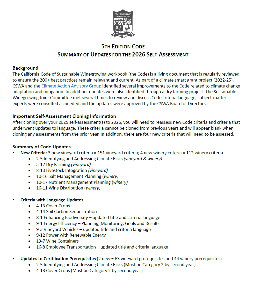 The CSWA Highlights Newsletter features why three vintners chose to self-assess their operations for sustainability through the California Sustainable Winegrowing Alliance (CSWA) program and how they have benefited.
