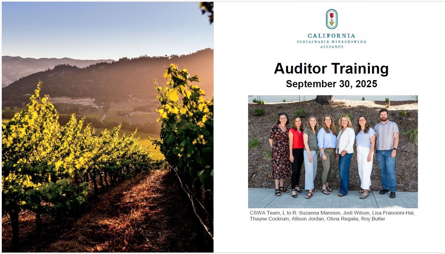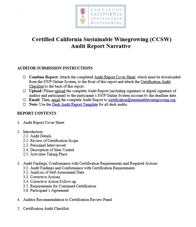 The CSWA Farm Plan Template is based on the California Code of Sustainable Winegrowing Workbook, Certified California Sustainable Winegrowing, and the LandSmart® for Vineyards Farm Plan, Version 4.0.